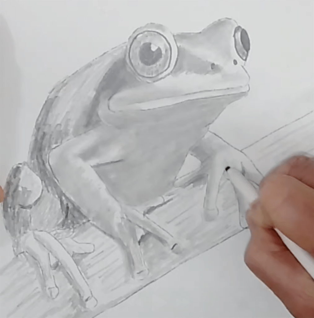 Draw the outline of a frog image using a simple image transfer method, then bring it to life with graphite pencil shading. By layering light, medium, and dark values, we’ll give the frog shape and form, making it look realistic.