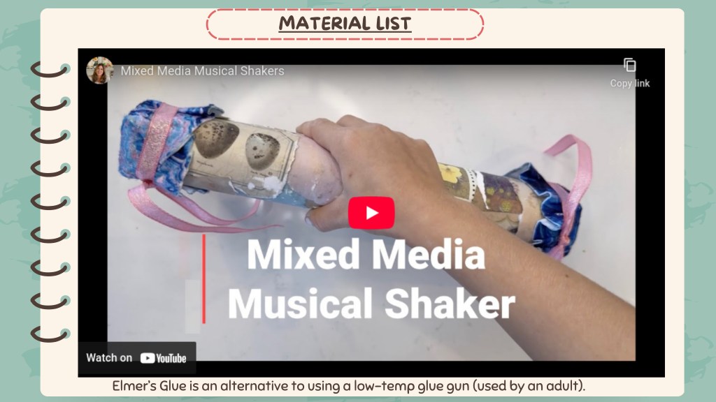 The Making Music Course includes three engaging lessons: a Giraffes Can’t Dance literacy and movement lesson, a mixed media musical shaker activity, and a maraca art project. Each lesson encourages creativity, rhythm, and fun for learners of all ages.