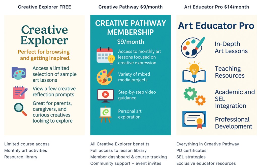 Ignite your creativity and grow as an artist and educator inside our membership community. Discover inspiring resources and connect with a vibrant network of fellow creatives.